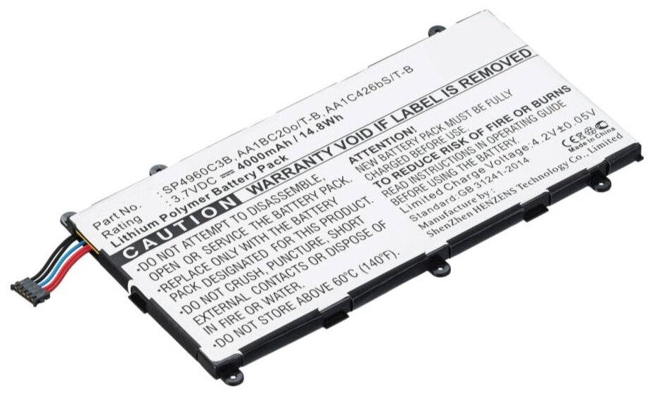 Purpose: for tablets, battery capacity: 4000 mAh, battery type: Li-Pol, voltage: 3.70 V, compatibility: Samsung, weight: 80 g