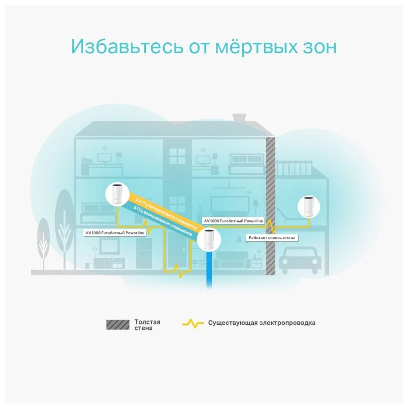 Device type: Mesh system, Wi-Fi device frequency range: 2.4 / 5 GHz simultaneous operation, Internet connection WAN: Ethernet RJ-45, Port speed: 1 Gbps, Wi-Fi 802.11 standard: ac Wi-Fi 5, connection type: Wi-Fi+Powerline, Number of LAN ports