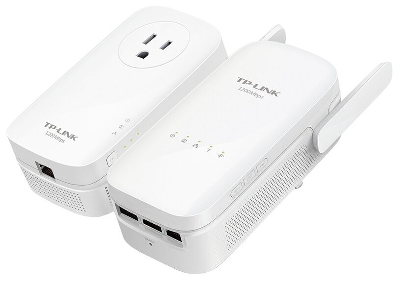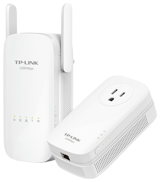 Set of two adapters: TL-WPA8630 and TL-PA8010P; adapter sizes: 140.6x68x45 mm and 131x72x42 mm, respectively; network speed - 1200 Mbps; MIM support; Built-in electrical outlet; Type of external antenna: non-removable; Web interface