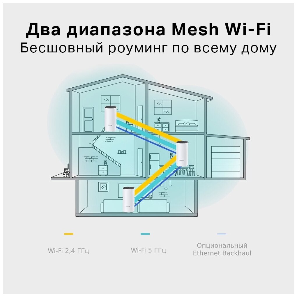 Device type: Mesh system, Wi-Fi device frequency range: 2.4 / 5 GHz, Wi-Fi 802.11 standard: a Wi-Fi 2, ac Wi-Fi 5, b Wi-Fi 1, g Wi-Fi 3, n Wi -Fi 4, connection type: Wi-Fi