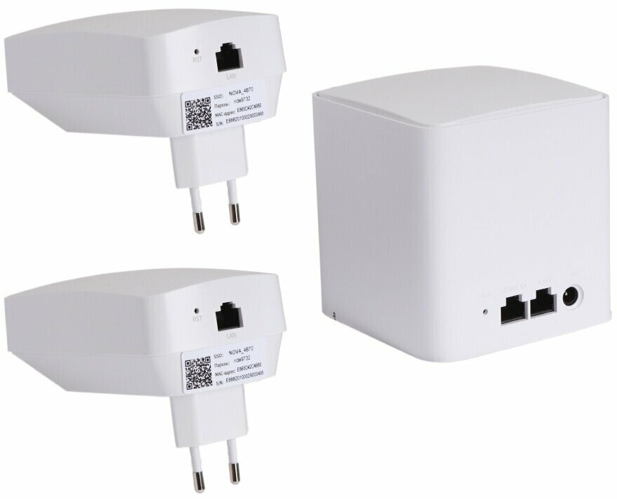 A set of three devices for organizing a seamless Wi-Fi Mesh network in large houses;