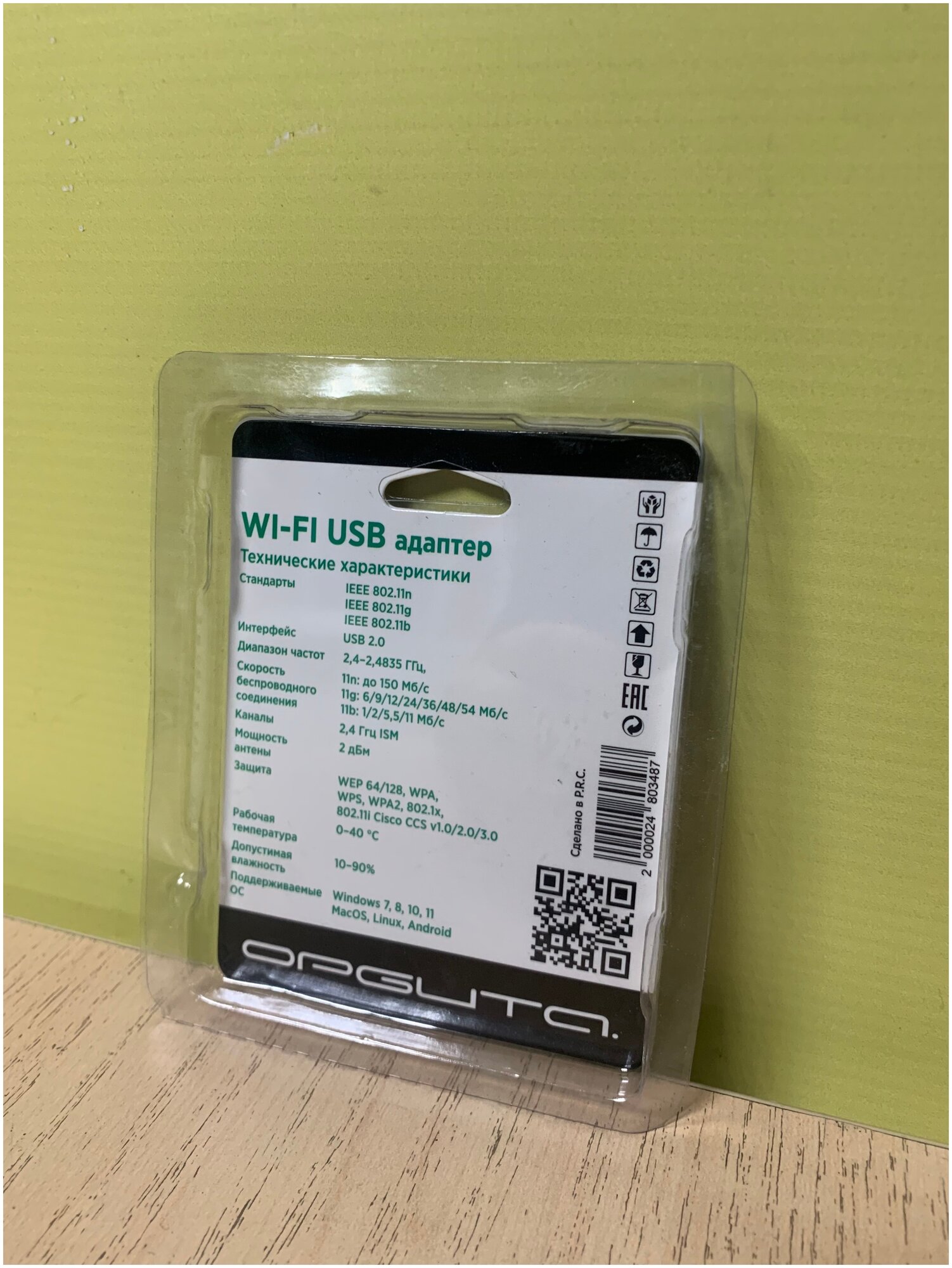 Device type: Wi-Fi adapter, Wi-Fi device frequency range: 2.4 GHz, connection type: Wi-Fi