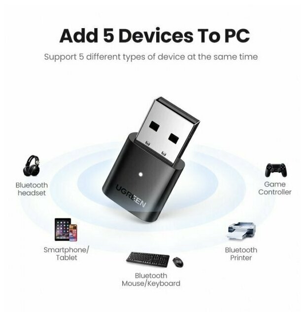 UGREEN Bluetooth 5.0 USB Adapter Receiver Transmitter EDR Wireless Dongle for PC Bluetooth Headphone Speakers Mouse 80889