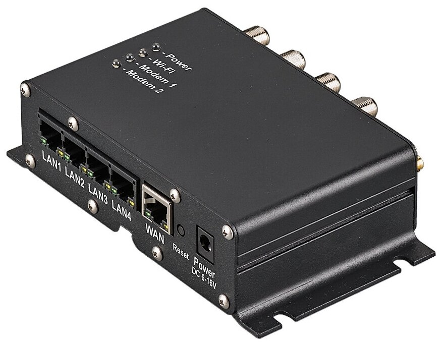 4 SMA connectors for 3G\LTE antennas; support for two SIM-cards at the same time; Flash memory: 32 MB; Transmitter power: 20 dBm; Type of external antenna: removable; Web interface