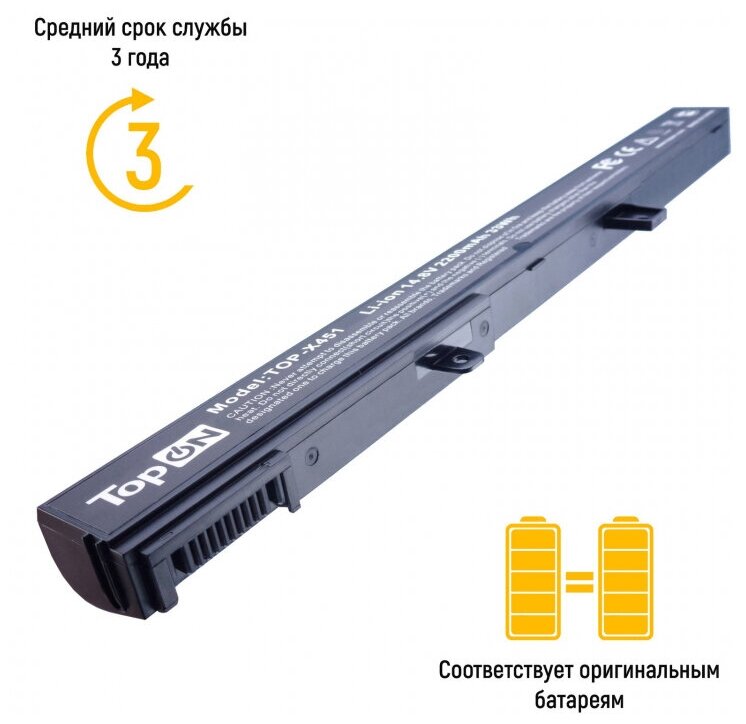 Purpose: for laptops, battery capacity: 2200 mAh, battery type: Li-Ion, voltage: 14.40 V, compatibility: ASUS
