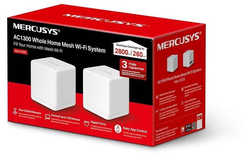 Seamless Mesh Router Mercusys Halo H30G2-pack AC1300 10/100/1000BASE-TX white pack:2pcs