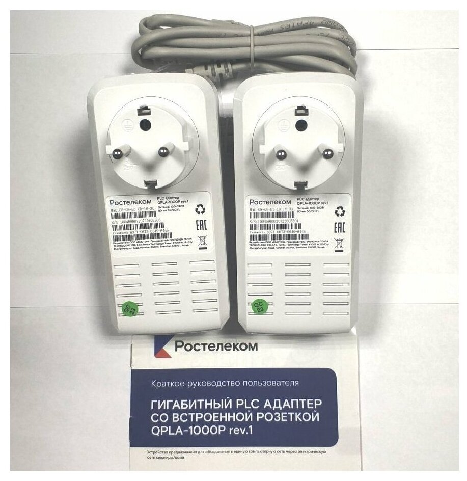 Included PLC adapter - 2pcs, cable with RJ-45 connector - 2pcs, quick start guide, warranty card