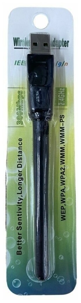 Device type: Wi-Fi adapter, Wi-Fi device frequency range: 2.4 GHz, Wi-Fi 802.11 standard: b Wi-Fi 1, g Wi-Fi 3, n Wi-Fi 4, connection type: Wi-Fi, max . wireless connection speed: 300 Mbps