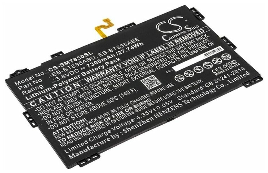 Purpose: for tablets, battery capacity: 7300 mAh, battery type: Li-Pol, voltage: 3.80 V, compatibility: Samsung, weight: 113.20 g