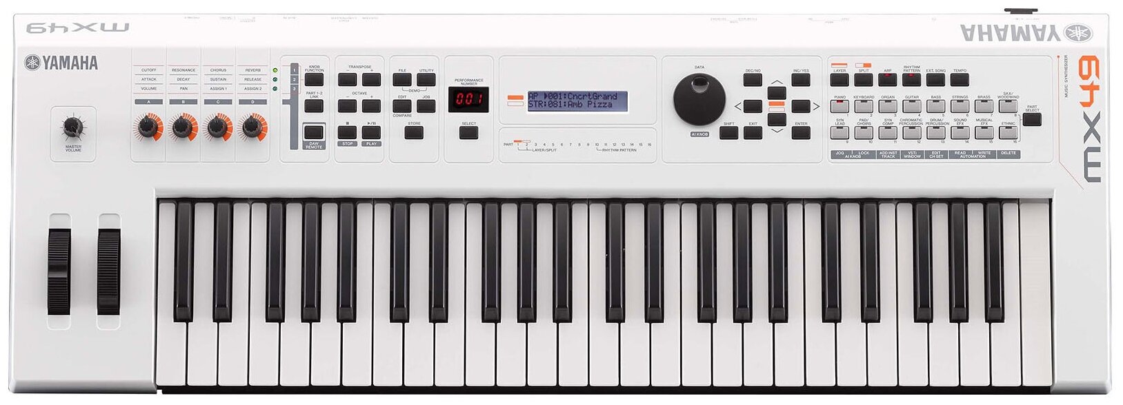 Arpeggiator, song recording, keyboard split, reverb, transposition, keyboard touch sensitivity