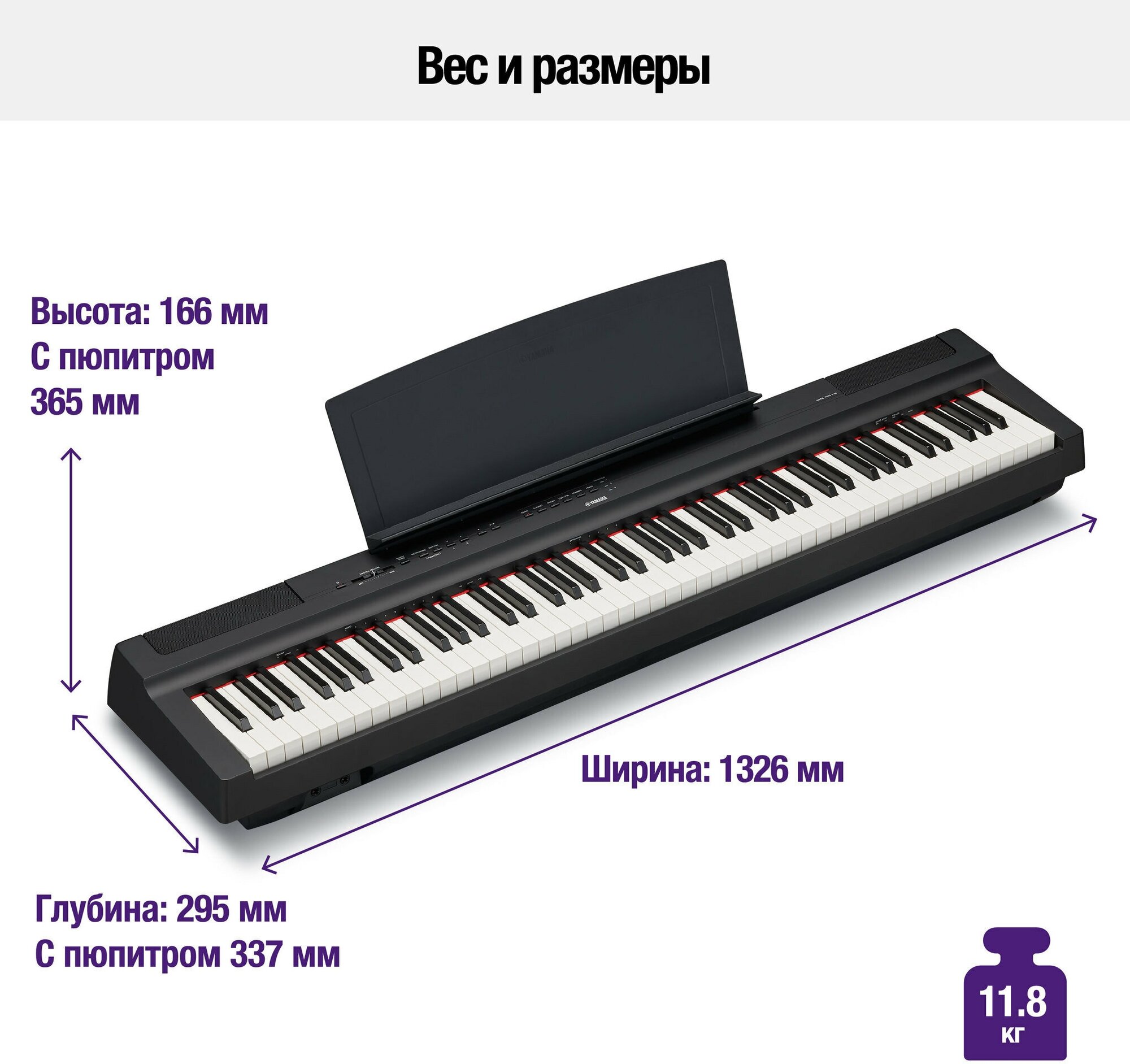 Number of keys: 88, key size: full size, keyboard hardness: weighted, hammer action, pedals: pluggable, body: compact, auto accompaniment, song recording, metronome, split keyboard,