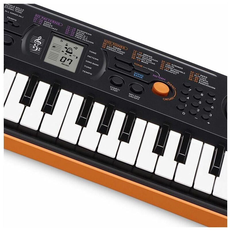 Number of keys: 44, key size: small, keyboard hardness: unweighted, display, pedals: no, body: compact, auto accompaniment, learning, headphone output, built-in speaker system,