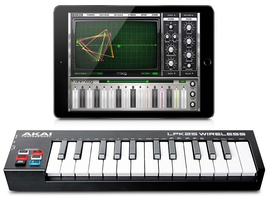 Number of keys: 25, key size: small, keyboard hardness: unweighted, pedals: pluggable, body: compact, arpeggiator, keyboard touch sensitivity, USB Type B, mini USB, Bluetooth, power supply: o