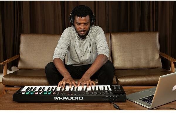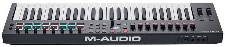 Number of keys: 49, key size: full-size, keyboard hardness: semi-weighted, DAW compatible, pedals: none, pitch bend controller, modulation controller, right damper pedal, body: com