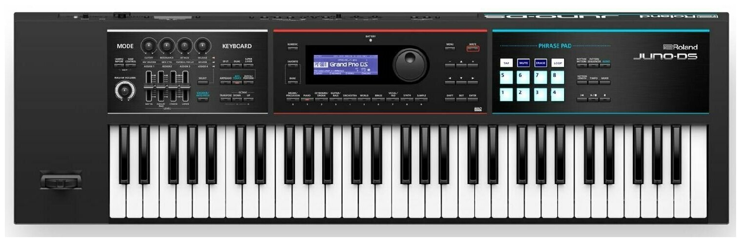 Number of keys: 61, key size: full-size, keyboard hardness: unweighted, display, pedals: plug-in, pitch bend controller, modulation controller, body: compact, multi-timbral: 1