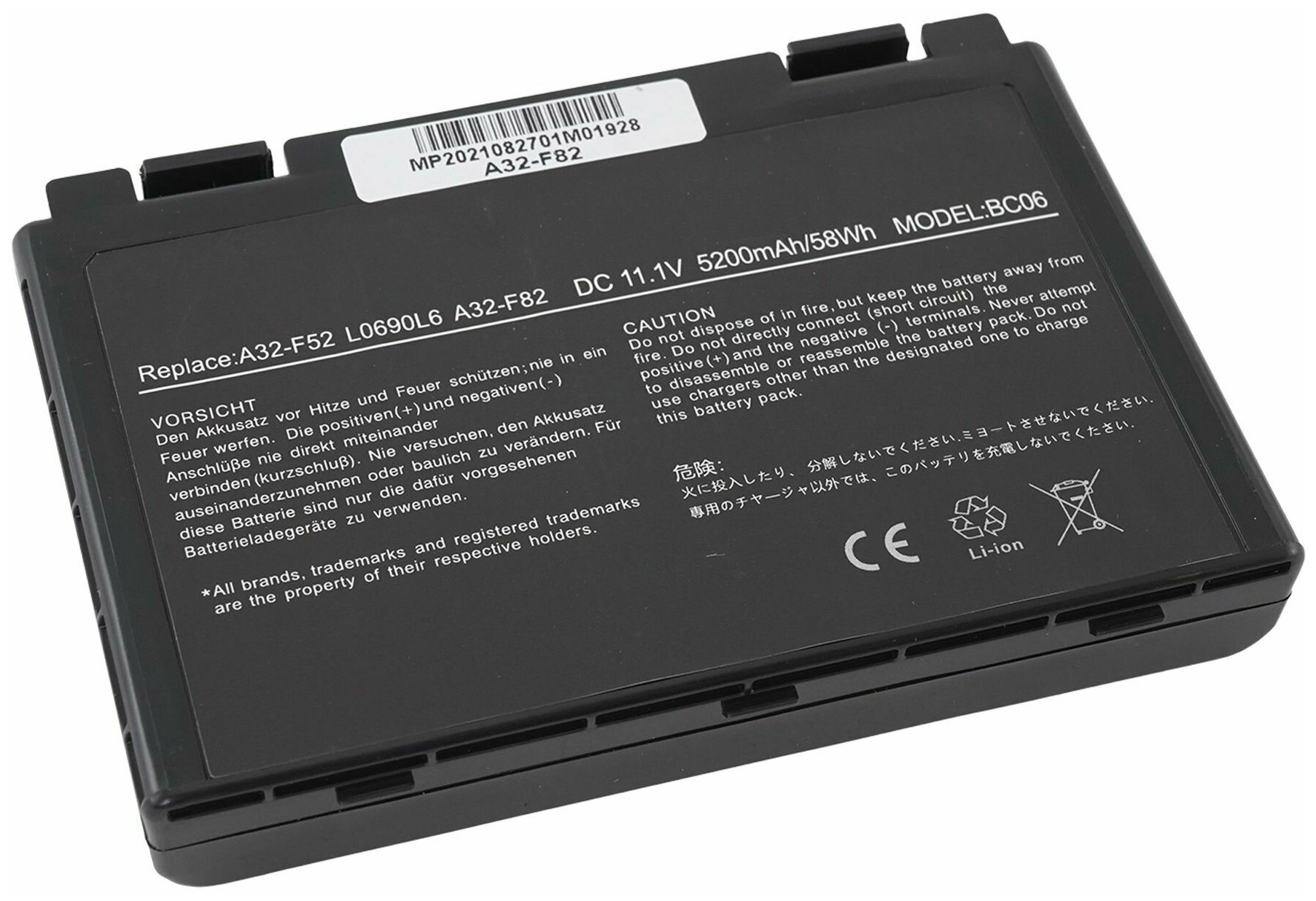 Purpose: for laptops, battery capacity: 5200 mAh, battery type: Li-Ion, voltage: 11 V, compatibility: ASUS
