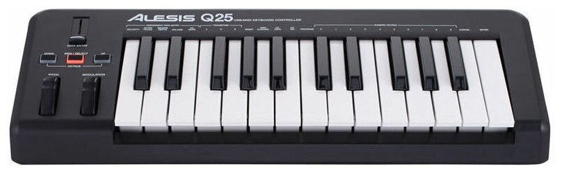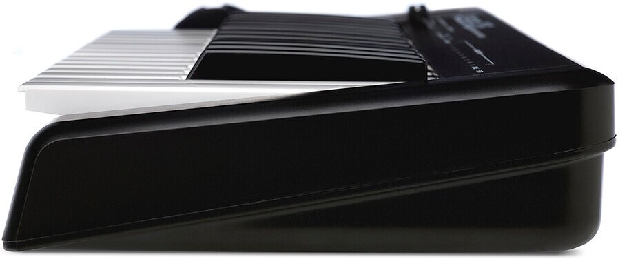 Number of keys: 25, key size: full-size, keyboard firmness: unweighted, pedals: plug-in, pitch bend controller, modulation controller, body: compact, keyboard sensitivity to