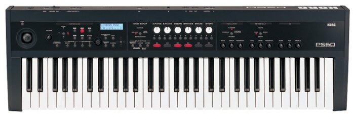 Number of keys: 61, key size: full-size, display, pedals: pluggable, pitch bend controller, modulation controller, body: compact, split keyboard, reverb, keyboard sensitivity