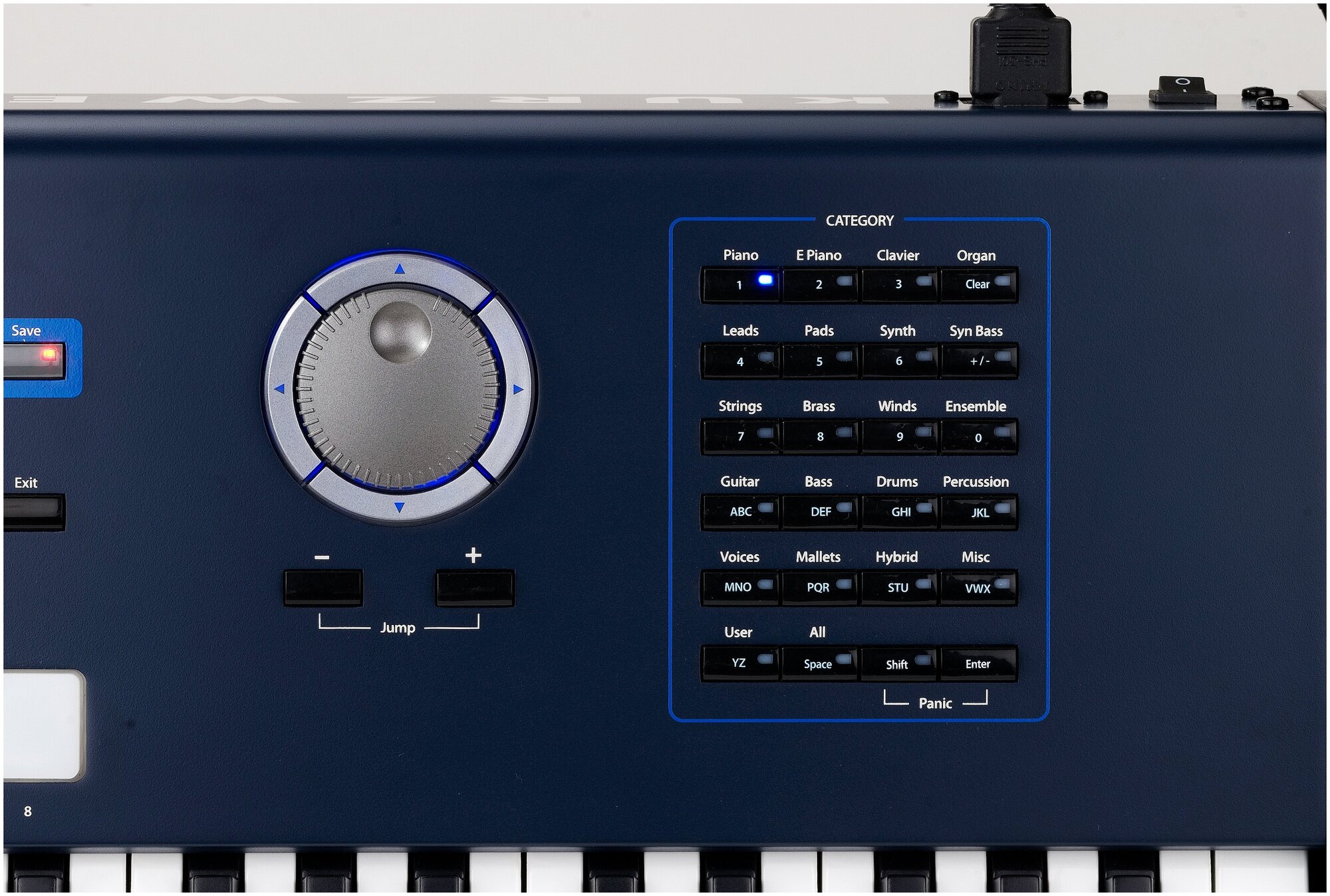 Arpeggiator, song recording, keyboard split, reverb, transposition, keyboard touch sensitivity, keyboard aftertouch sensitivity