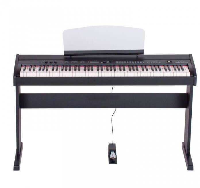 Number of keys: 88, key size: full-size, keyboard hardness: weighted, hammer action, display, pedals: plug-in, right damper pedal, body: compact, song recording, metronome, clasp split