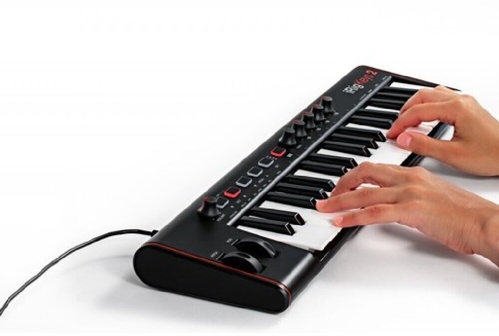 Number of keys: 37, key size: small, keyboard hardness: unweighted, pedals: plug-in, pitch bend controller, modulation controller, control pedal, body: compact, sensitive