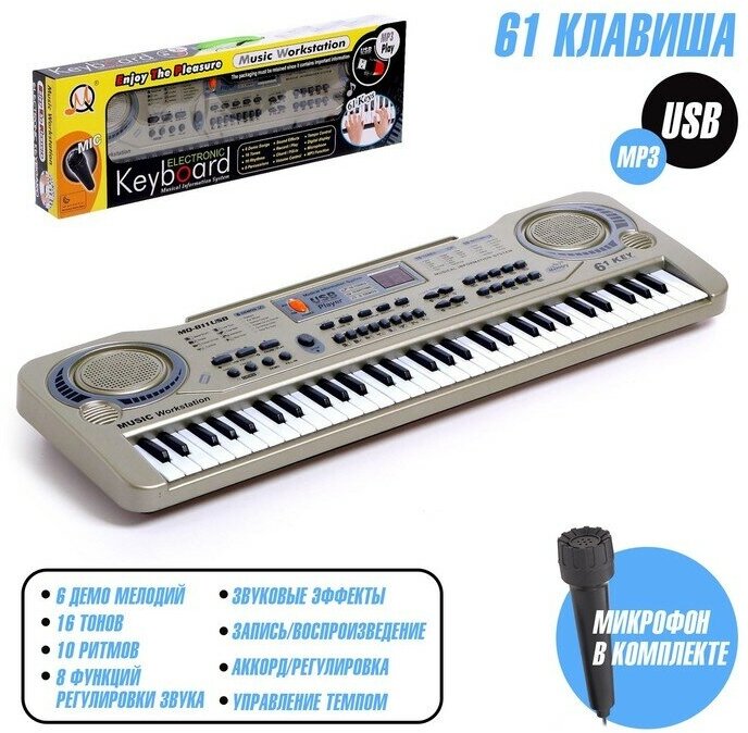 Number of keys: 61, key size: small, keyboard hardness: unweighted, display, pedals: no, body: compact, auto accompaniment, song recording, learning, USB Type A, microphone input, built-in