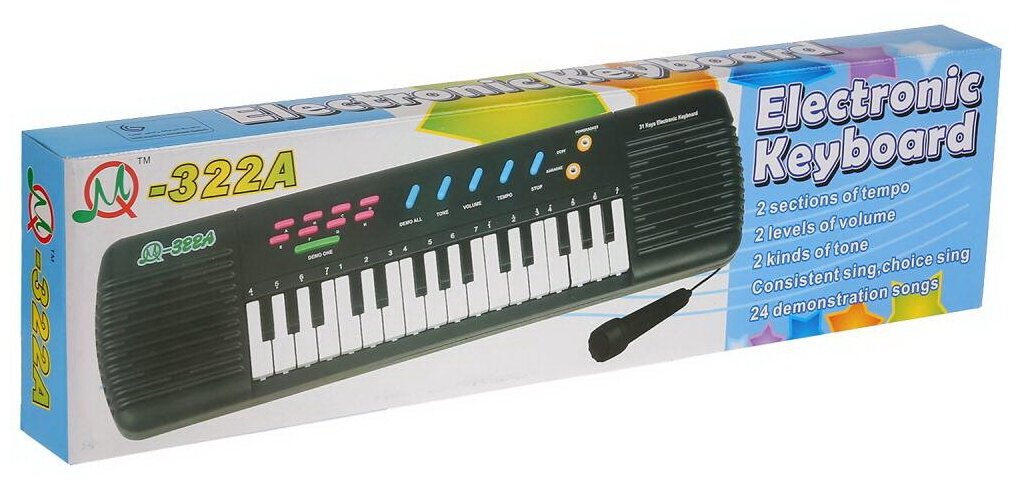 Number of keys: 31, pedals: no, body: compact, microphone input, built-in speaker system, synthesizer for children, power supply: mains supply, battery/accumulator operation