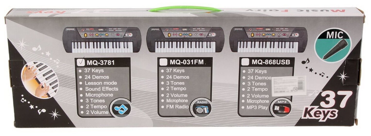 Number of keys: 37, display, pedals: no, case: compact, learning, microphone input, built-in speaker system, synthesizer for children, power supply: battery/accumulator operation