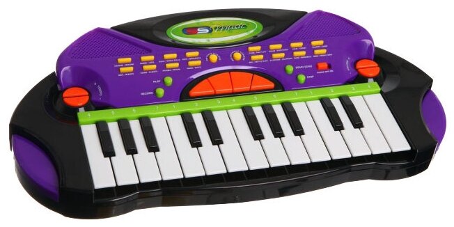 Number of keys: 25, key size: small, keyboard hardness: unweighted, pedals: no, body: compact, auto accompaniment, song recording, built-in speaker system, synthesizer for children,