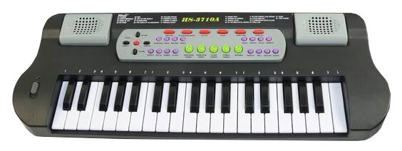 Number of keys: 37, key size: small, keyboard hardness: unweighted, pedals: no, case: compact, learning, microphone input, built-in speaker system, synthesizer for children