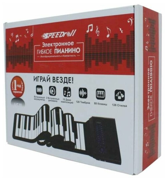 Number of keys: 88, key size: full-size, keyboard hardness: unweighted, display, pedals: plug-in, right damper pedal, body: compact, auto accompaniment, Russian language, transposition, USB Type B, m