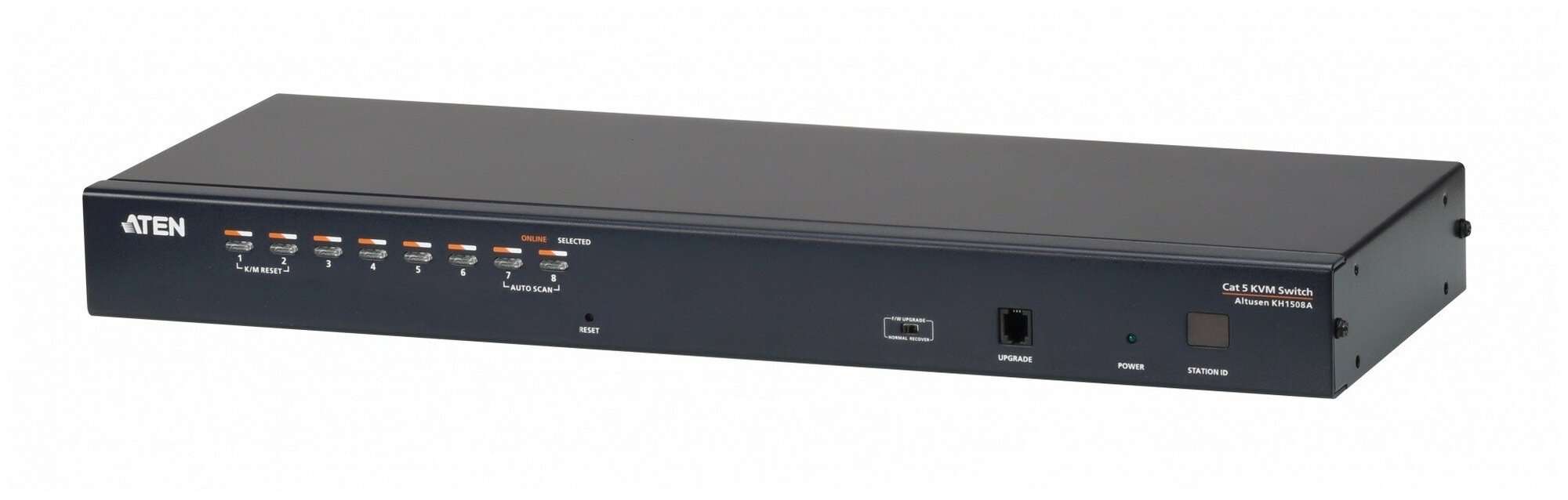 KH1508A 8-Port High Density KVM Switch with Cat 5 Cable, Rackmount Kit, 4pcs Feet Kit, Firmware Upgrade Cable, Power Cord, User Manual