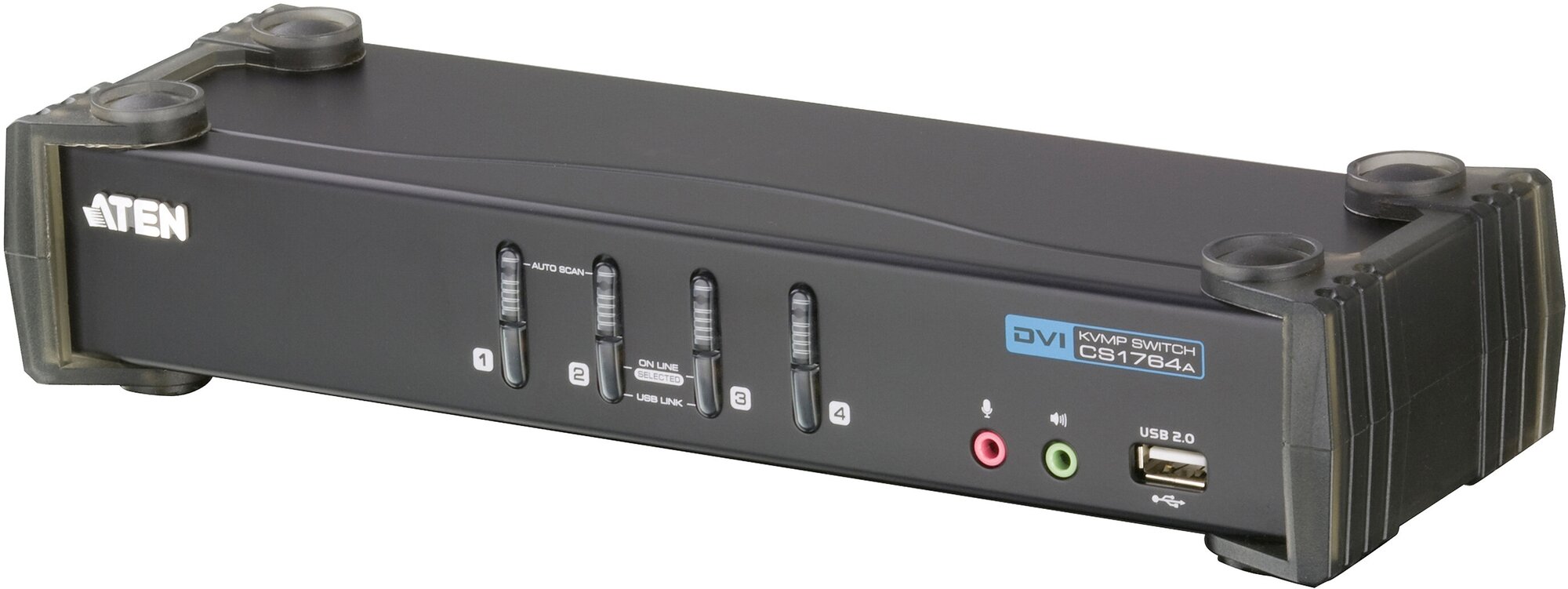 1x CS1764A USB 2.0 DVI KVMP switch, 4x DVI-D dedicated KVM cables, 1x power adapter, 1x user manual