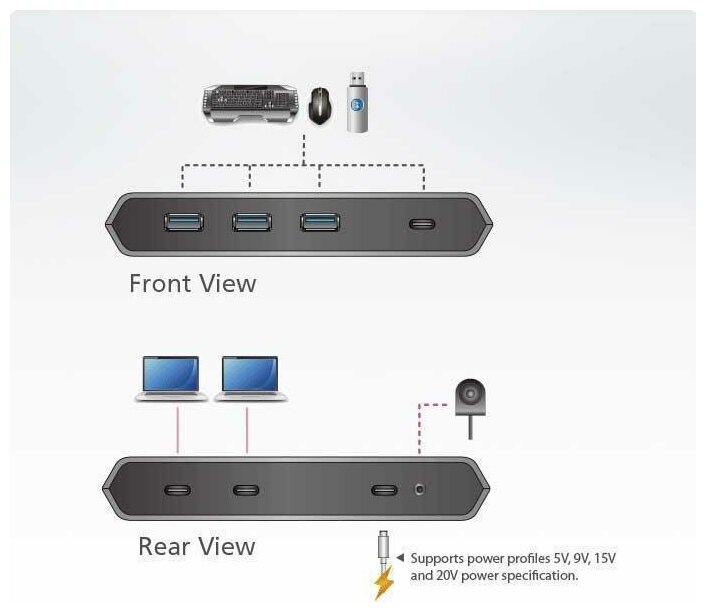 ATEN US3342 / US3342-AT USB-C Switch, ATEN US3342-AT 2-Port USB-C Gen 2 Shared Switch