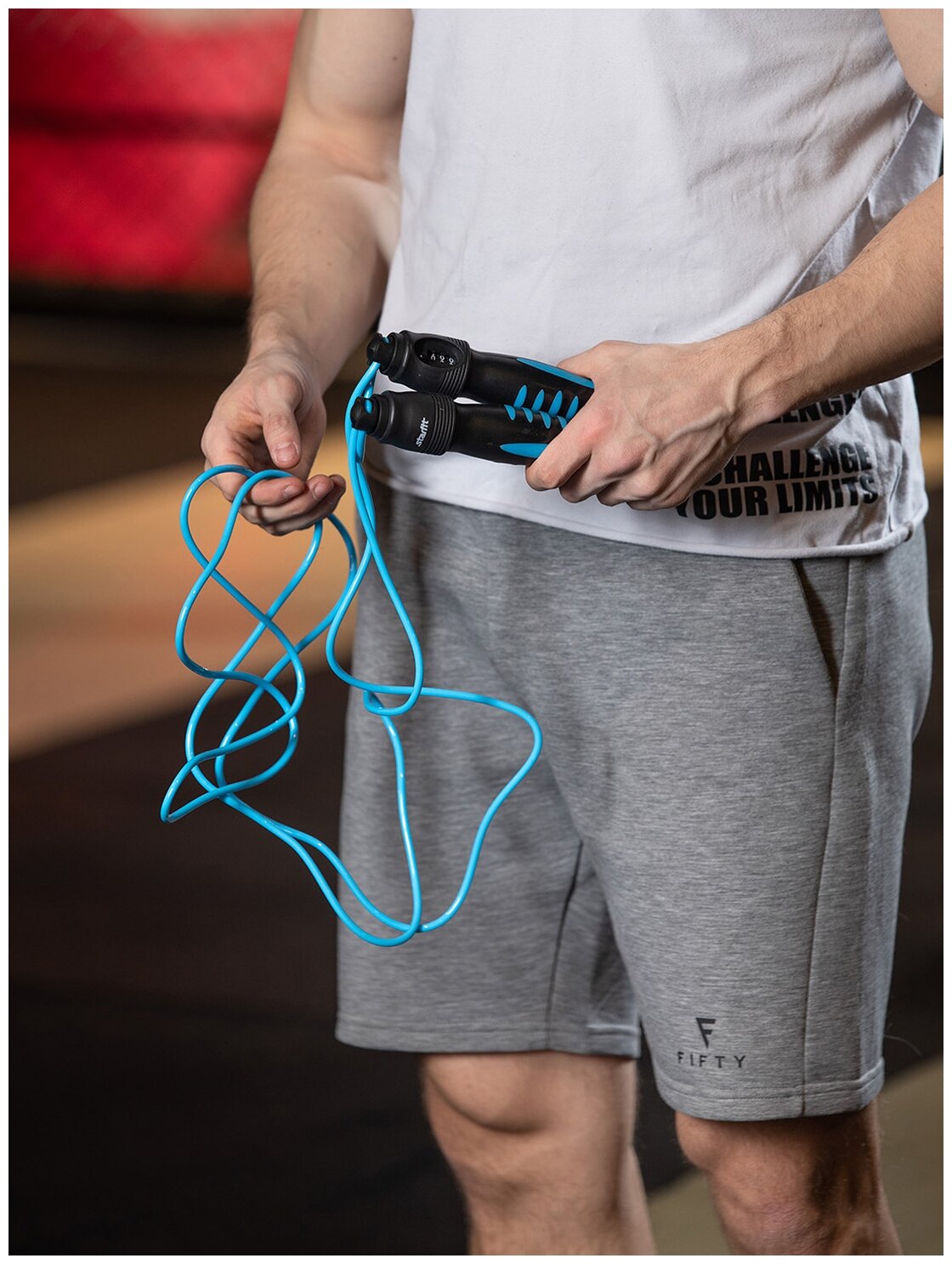 Features: right angle, length adjustment, jump counter, ergonomic handles, handle material: plastic, cord material: PVC, adjustments: cord length, right angle, weight: 295 g