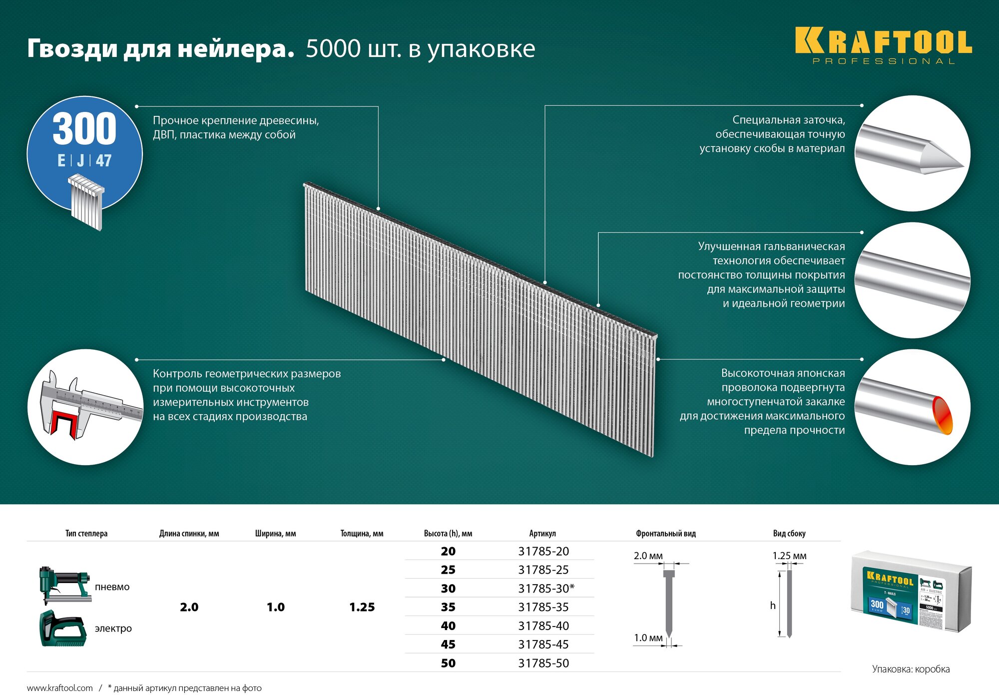 Nails Kraftool 31785-40 for pistol, 40 mm