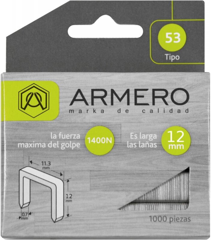 Product type: staples, staple type: type 53, length: 12 mm, staple width: 11.40 mm, staple thickness: 0.75 mm, pack quantity: 1000 pcs.