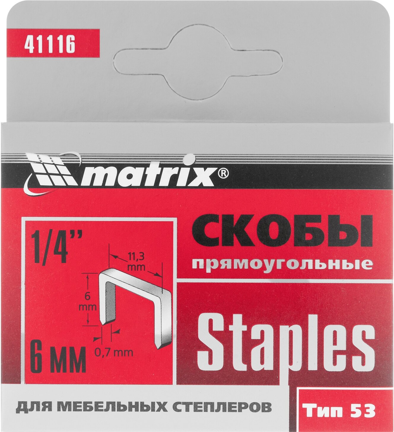 Product type: staples, staple type: type 53, length: 6 mm, staple width: 11.30 mm, staple thickness: 0.70 mm, package quantity: 1000 pcs, weight: 0.06 kg