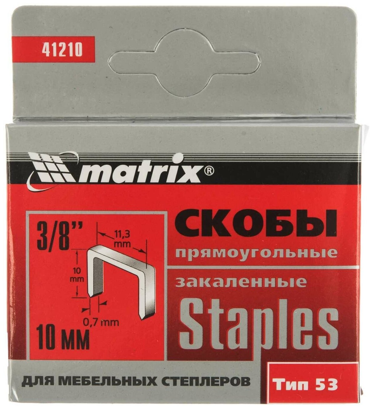 Product type: staples, staple type: type 53, length: 10 mm, staple width: 11.30 mm, staple thickness: 0.70 mm, pack quantity: 1000 pcs, weight: 0.09 kg