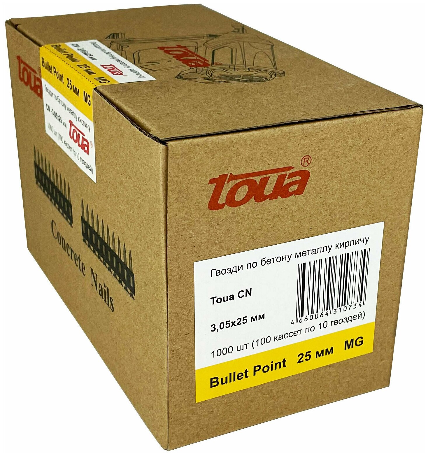 Product type: nails, Nail for mounting gun, type of clip: Nail for mounting gun, length: 25 mm, section: 3.05, quantity per pack: 1000 pcs.