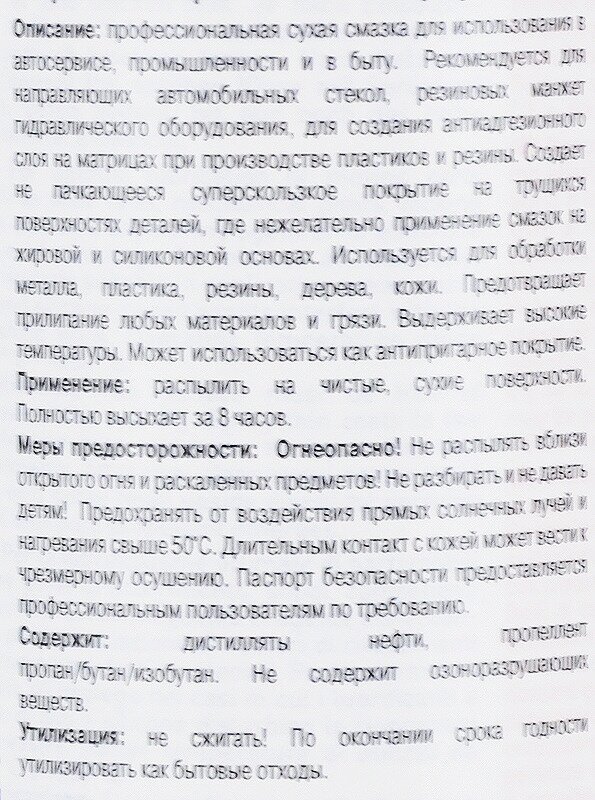 Type: grease, type of grease: teflon, application: locks and hinges, bearings, rubber seals, glass, chains, specialization: anti-creak, universal, For glass, Protection, Body, Glass, consistency: liquid