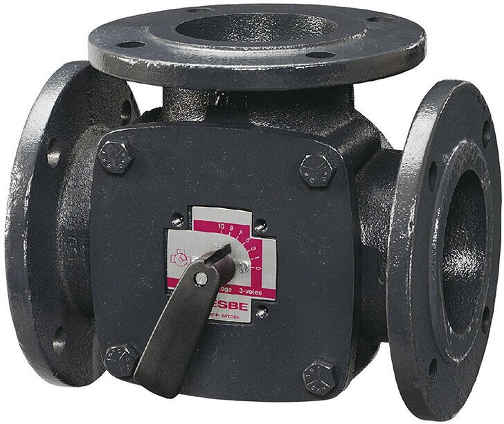 Type: three-way, body material: cast iron, connection type: flanged, nominal pressure: PN 6, diameter: DN 80 3", capacity: 150 m³/h