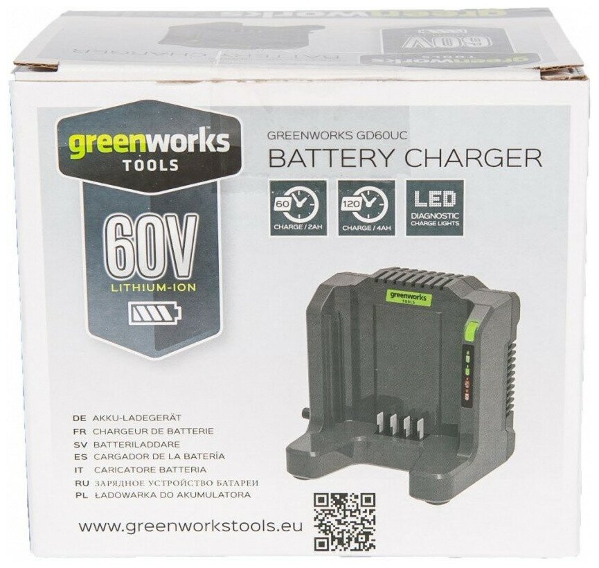 Compatible brand: GreenWorks, type: charger, battery type: Li-Ion, voltage: 60V