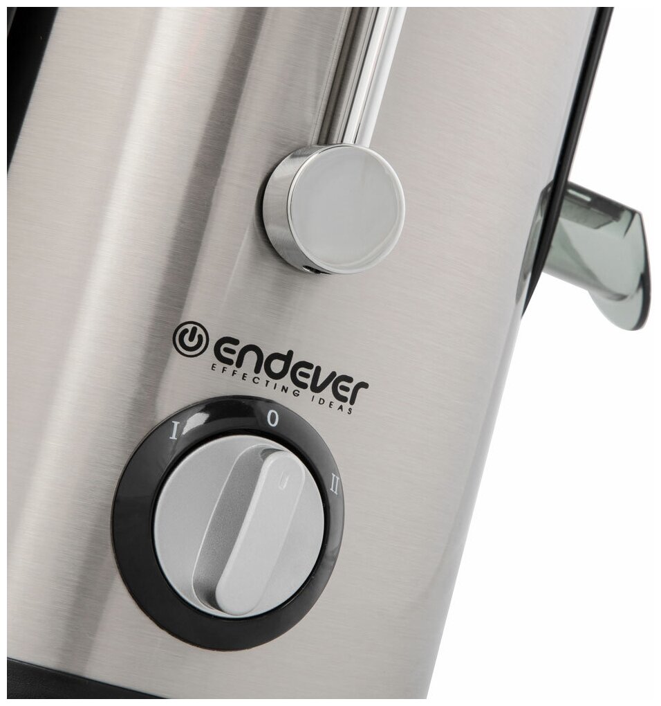2 speed settings, motor overheating protection system, rubber feet for stable placement, body material - metal, transparent juice container, wide fruit opening - 60 mm, automatic separation