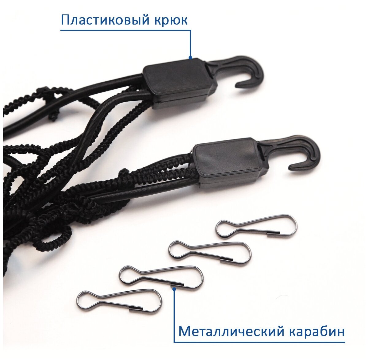 Type: luggage net, set quantity: 1 pc., material: polypropylene, number of hooks: 4 pcs.