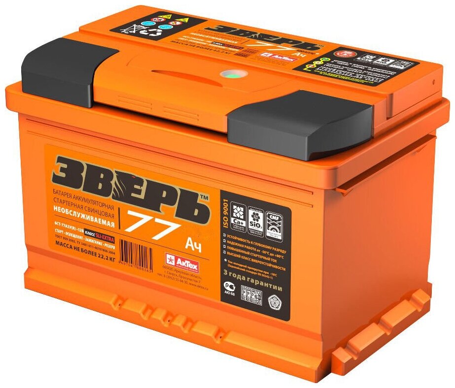 Rechargeable battery 6ST-77 Zver calcium Reverse polarity 750A 278x175x190 ZVK773R