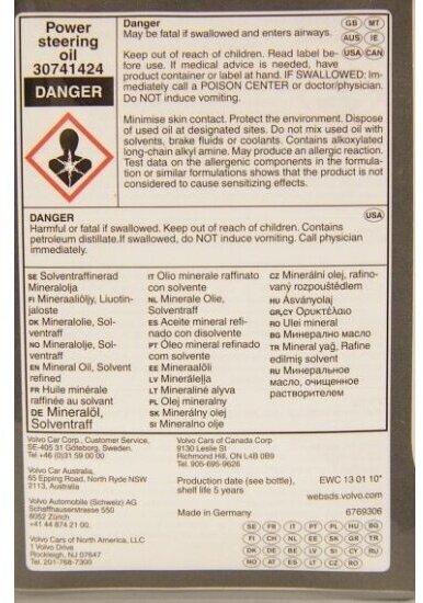Type: power steering fluid, application: hydraulic system, electric power steering, composition: mineral