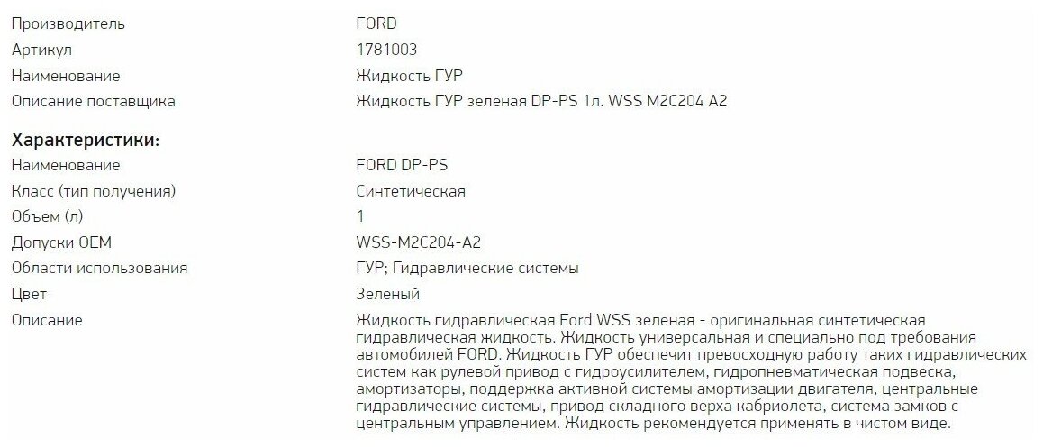 Power Steering Fluid Ford ATF DP-PS