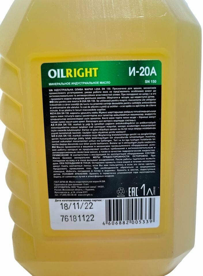 Spindle oil I-20a 1l Oilright OILRIGHT art. 2590