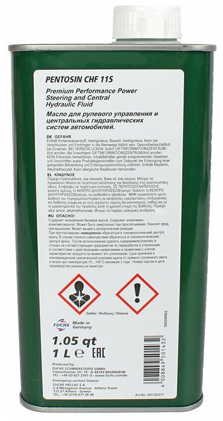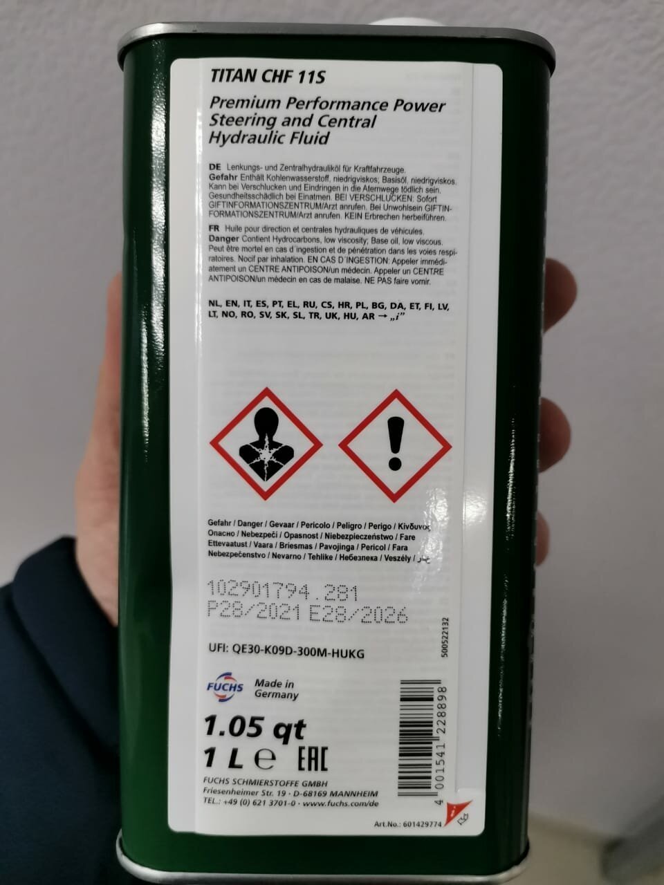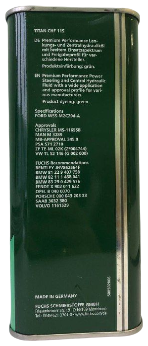 Power Steering Fluid OEM Specification: CHF 11S, MB 345.0, VW 002 000, Volvo 1161529, ZF TE-ML 02K